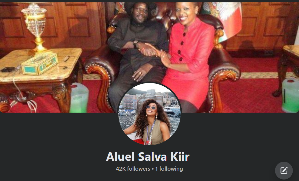 The Facebook page “Aluel Salva Kiir” is not affiliated with President Salva Kiir Mayardit or his family. The account’s profile photo belongs to a South African influencer, while the cover image shows the President with a Kenyan journalist during a past media engagement.