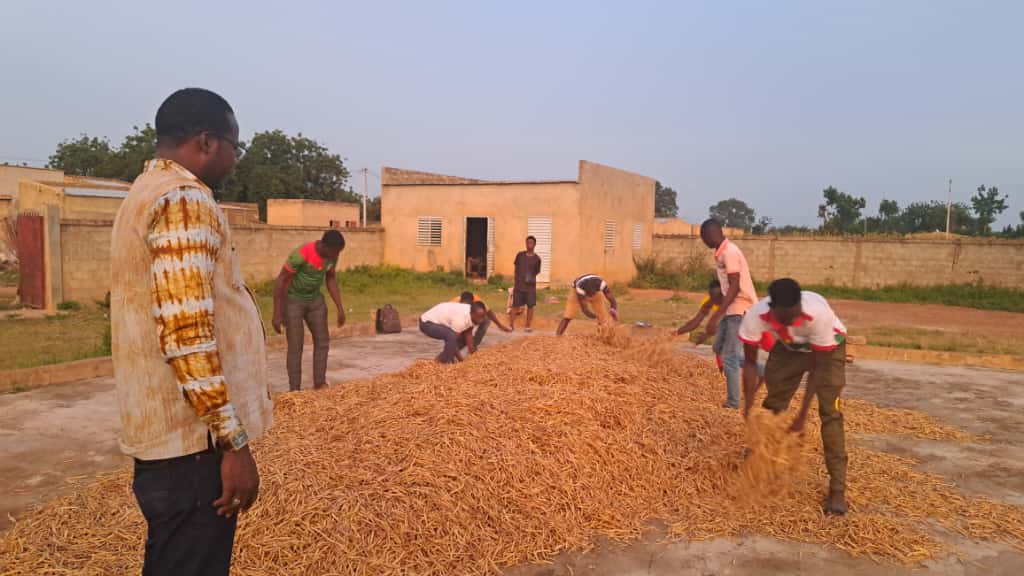 À Poa, les 24 VDP agricoles ont emblavé 8,5 hectares de Niébé (haricot) sur les 14 hectares acquis. Malgré un démarrage tardif, la récolte est déjà en cours, avec une attente minimale de 4 tonnes. Une performance remarquable d’autant plus que cette production est axée sur des semences certifiées.