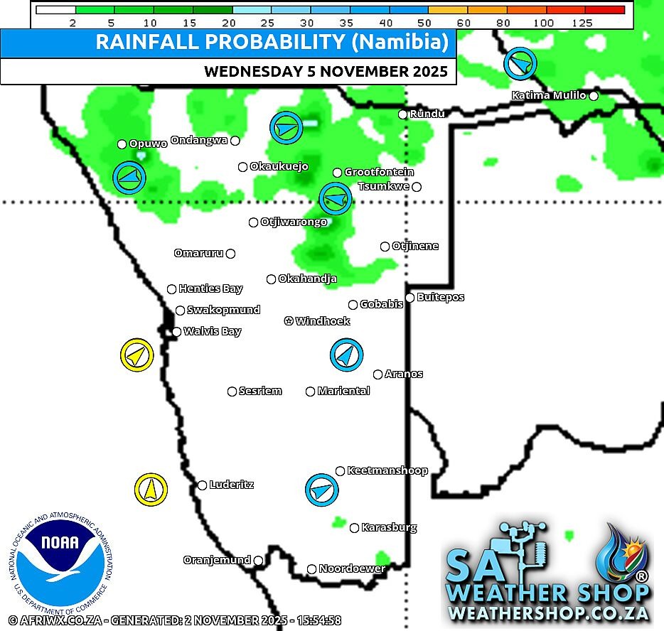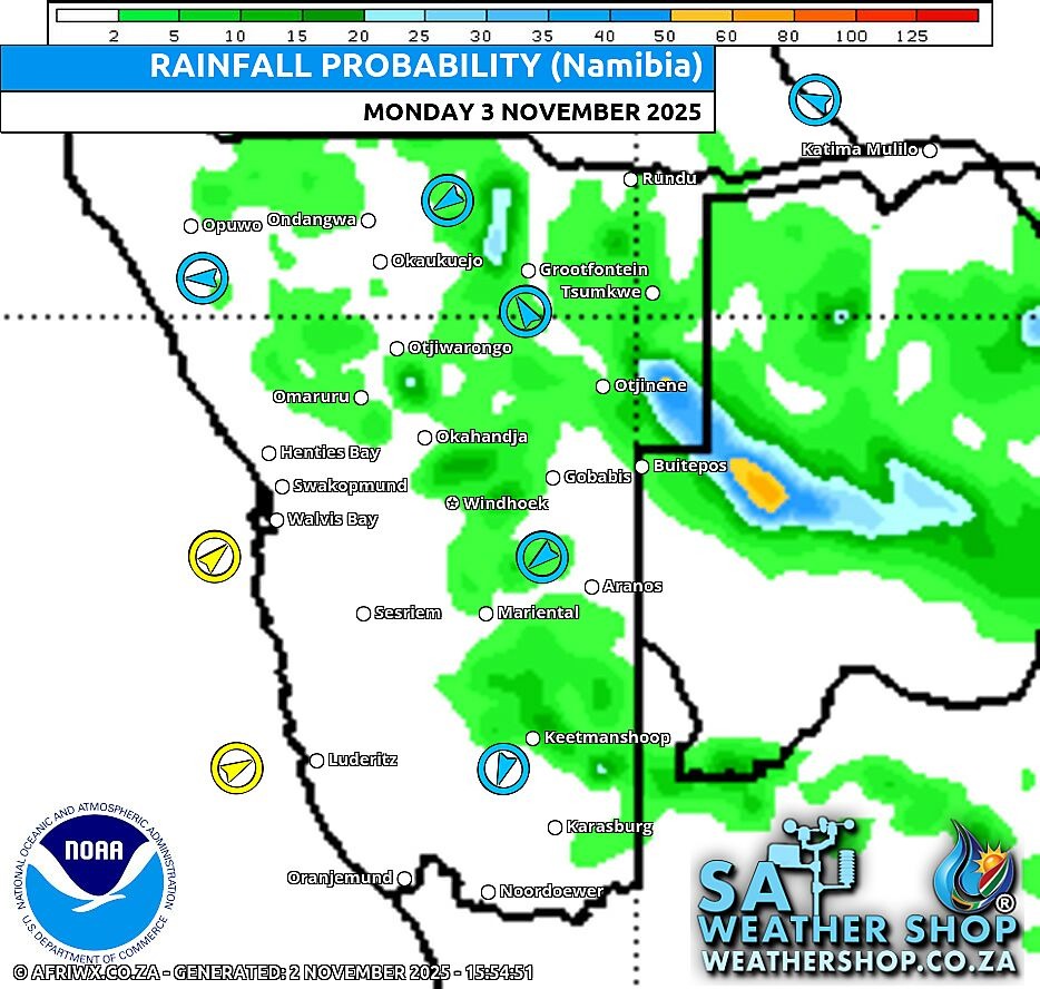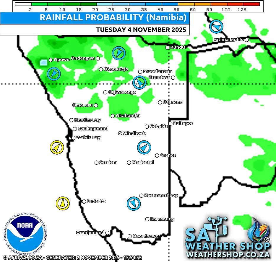 According to the Namibia Meteorological Service, additional showers are expected throughout the day across various interior areas, excluding the western half and the Zambezi Region.