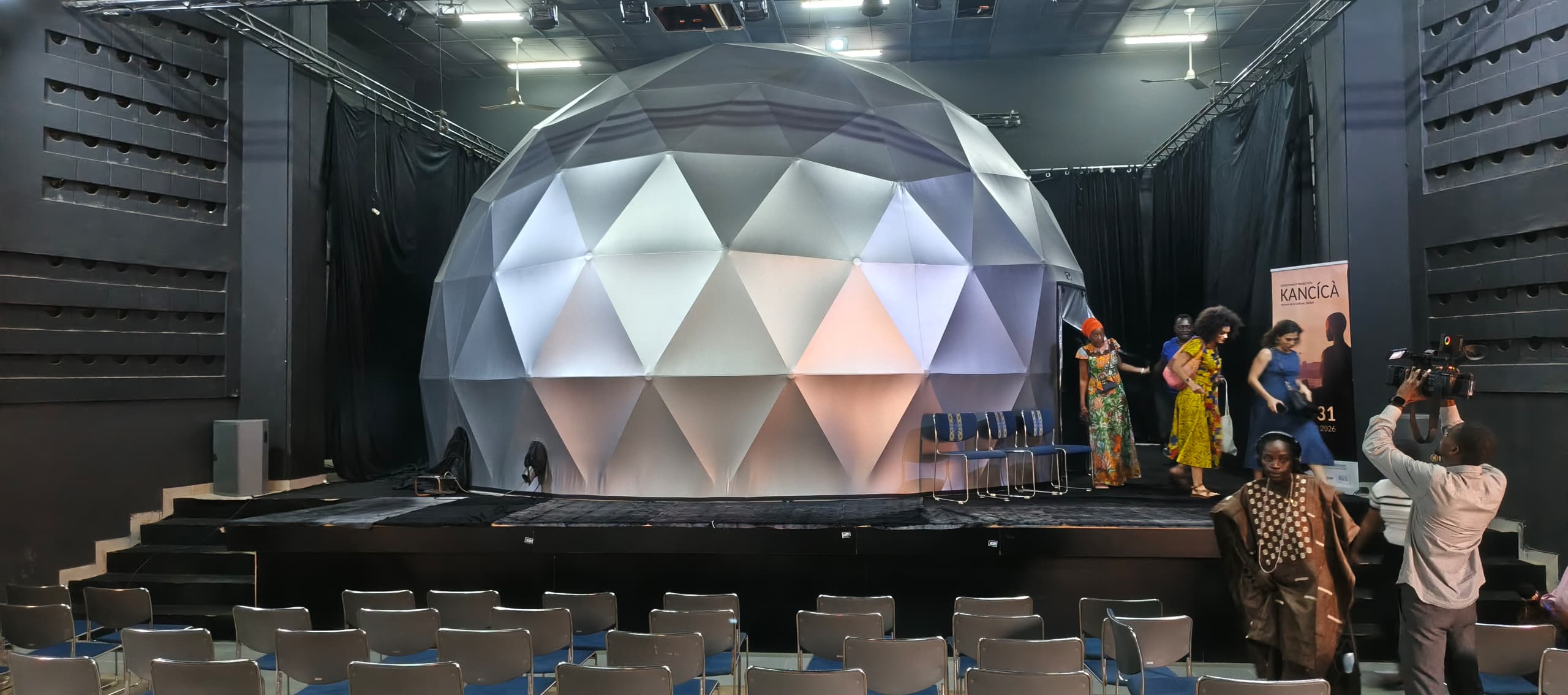« Quand j’entends ’’KANCÍCÀ’’, c’est le lien entre les trois temps de la vie, c’est-à-dire le passé, le présent et le futur », a affirmé le directeur de l’ADAC, William Codjo. Il explique ‘’le passé’’ par l’histoire réelle de Na Agontimé, ‘’le présent ‘’du fait de l’usage des technologies immersives, et ‘’le futur’’ symbolisé par le dôme, objet presque futuriste qui ouvre de nouvelles perspectives de transmission culturelle.