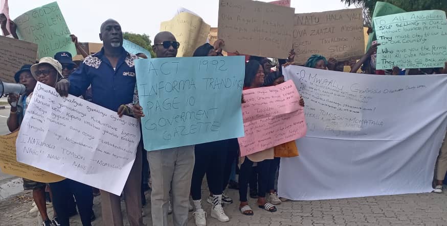 The demonstrators demand that the number of Angolan traders be limited and that only those with valid permits should be allowed in the country. Others should trade at Santa Clara, on the Angolan side opposite Oshikango, where Namibian traders would buy in bulk to re-sell in Namibia at a profit.