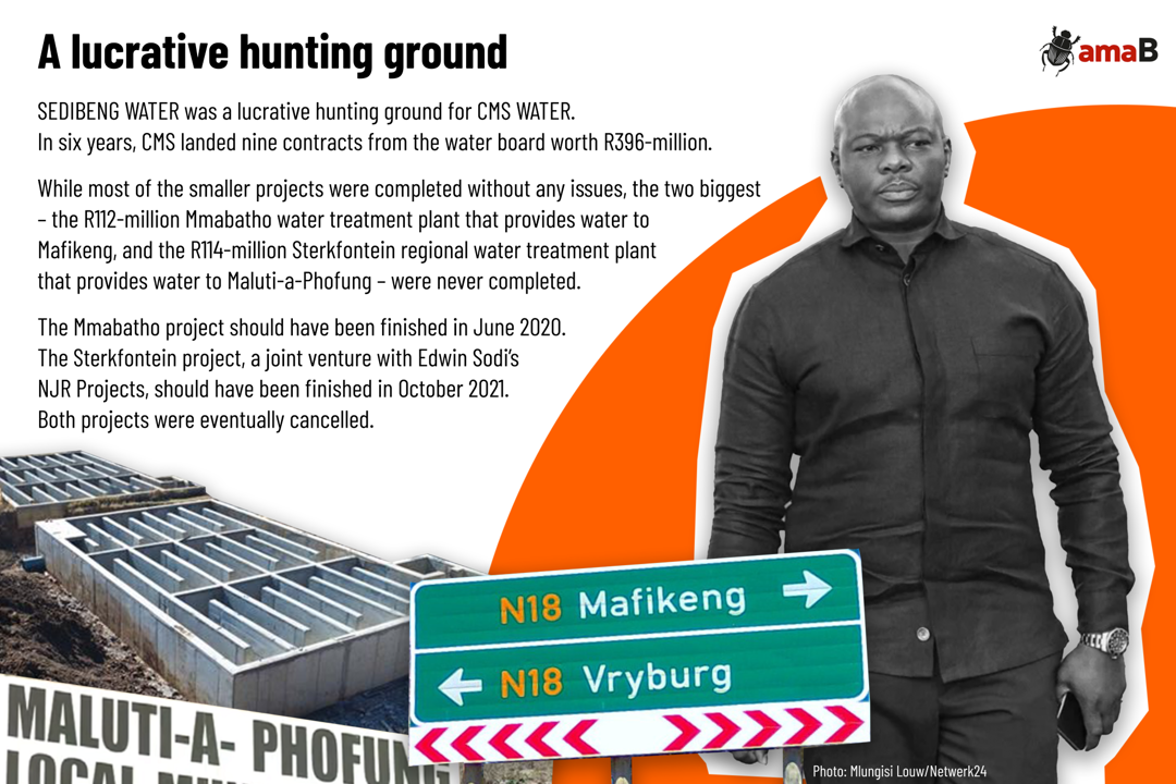 CMS had been bitten in Wolmaranstad, but Sedibeng Water would become a lucrative hunting ground: in the space of six years, CMS landed nine contracts worth R396 million.