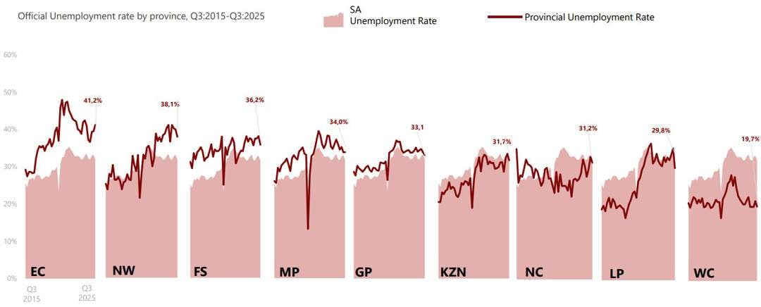 Of the provinces, only the Eastern Cape saw an increase in unemployment.