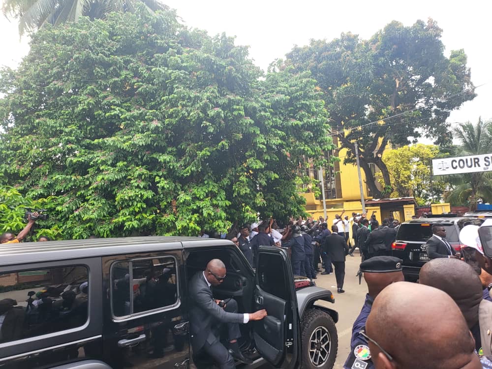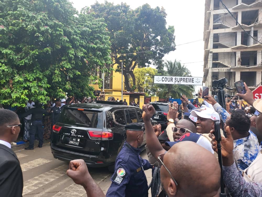 Accueilli par ses nombreux partisans, impatients depuis des heures, l’homme du 5 septembre 2021 est arrivé vêtu d’un boubou, les yeux cachés derrière ses éternelles lunettes noires, coiffé d’un bonnet blanc, la main levée pour saluer le public massivement mobilisé pour le soutenir. Le tout encadré par un imposant dispositif sécuritaire.