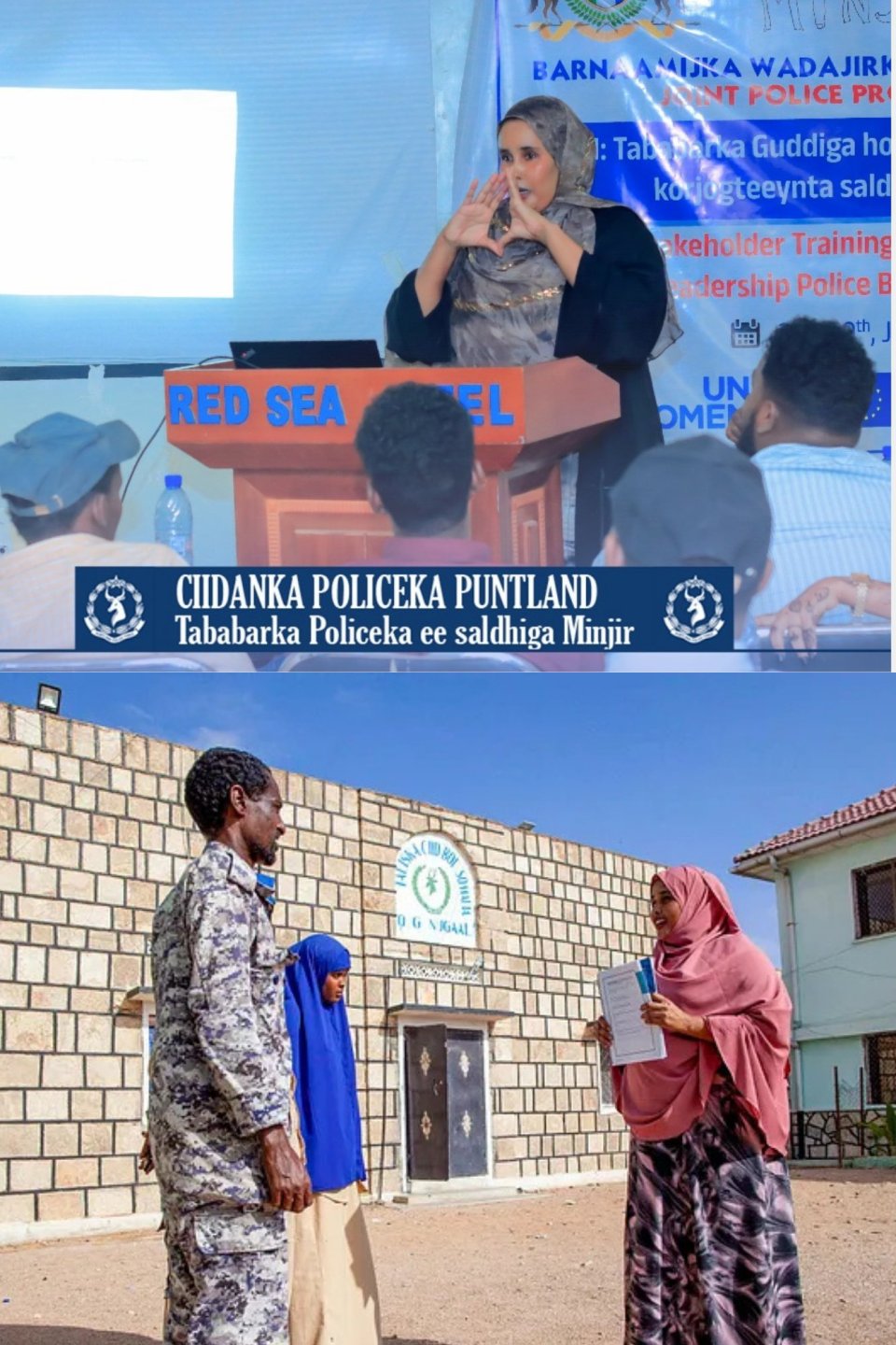 Currently, Fatima serves as Head of the Gender and Legal Unit in the Puntland Police, where she trains and advises on legal and gender-related work. She has also served on a strategic policy committee for the Puntland Police, shaping reforms under the UN-supported New Policing Model. Her mission is clear: bring more women into the force and advance community policing.
