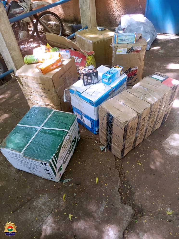 En effet, dans la soirée du 09 octobre 2025, une équipe de ladite sous-unité a intercepté un individu en provenance d’un pays voisin au cours de sa mission. Ce dernier transportait à lui seul sept (07) cartons de produits illicites, notamment du Gebedols, du Tetranors bolus, du Arbahin, de Good zoles, de Goods Albens, du Diazoles, du Centone, du Baojis wans, de Mégas powers, du Loperon capsule, du Calcium et de Pénicilline.